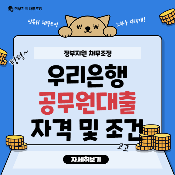 오늘은 우리은행 공무원 신용대출의 종류 및 신청자격, 대출한도 및 기간, 대출금리등에 대해 자세히 알아보는 시간을 가져보도록 하겠습니다.