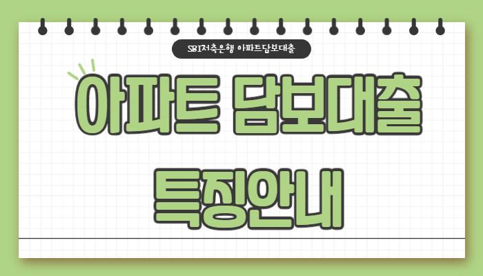 오늘은 SBI저축은행 아파트담보대출에 대해 알려드리도록 하겠습니다.