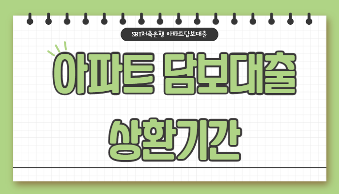 SBI저축은행 아파트담보대출의 상환기간은 5년으로 약정됩니다.