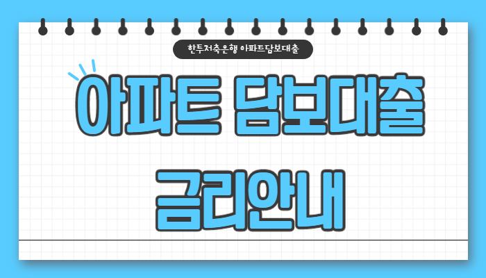 오늘은 한국투자저축은행의 아파트담보대출에 대해 알려드리도록 하겠습니다.