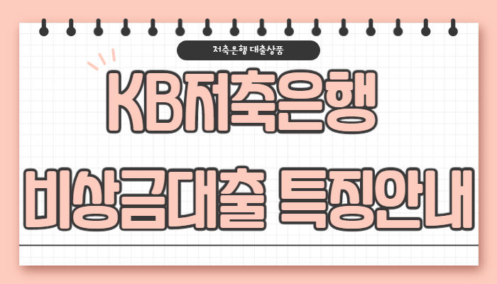 이번 시간에는 KB저축은행 비상금대출의 특징안내, 신청자격, 대출한도, 상환기간, 대출금리, 필요서류에 대해 알려드리도록 하겠습니다.
