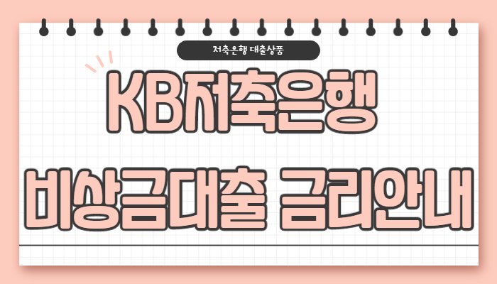 이번 시간에는 KB저축은행 비상금대출의 특징안내, 신청자격, 대출한도, 상환기간, 대출금리, 필요서류에 대해 알려드리도록 하겠습니다.