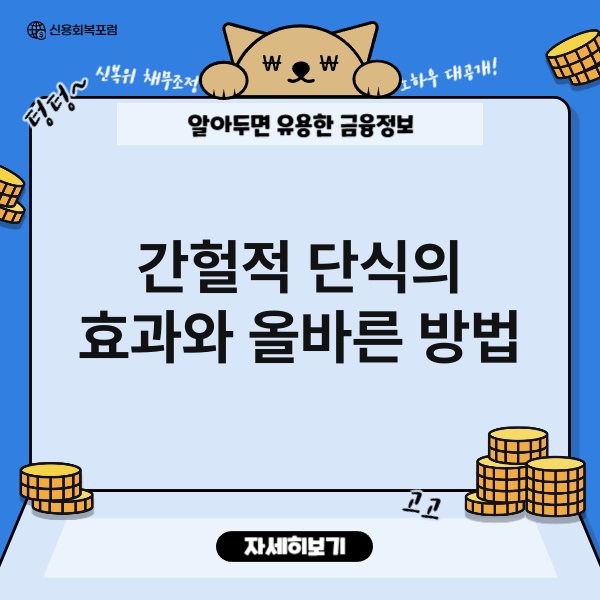간헐적 단식은 단순한 다이어트를 넘어, 전반적인 건강 증진에 기여할 수 있는 방법입니다.