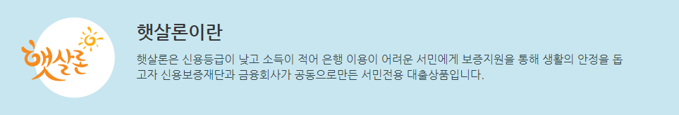 1금융 은행의 정부지원 서민대출 상품의 이름은 새희망홀씨이고, 2금융권 은행의 정부지원 서민대출의 이름이 햇살론입니다.
