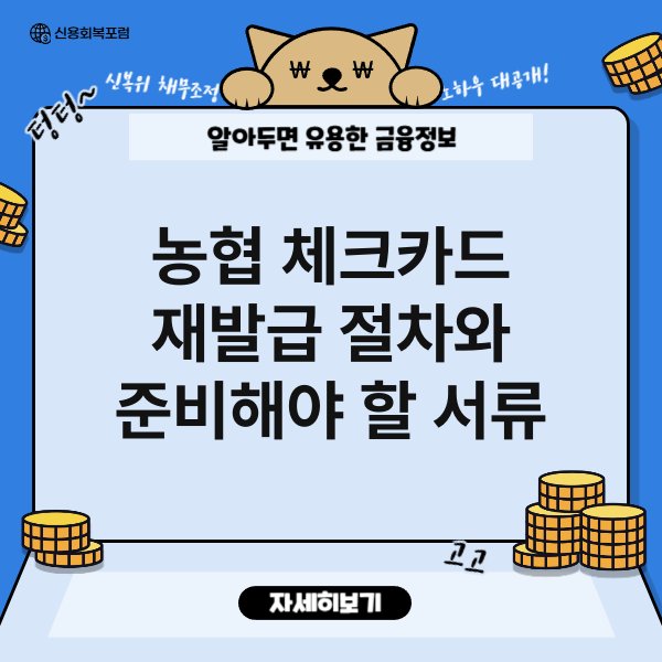 농협 체크카드를 재발급받고자 하시는 분들을 위해, 이 글에서는 재발급 절차와 필요한 서류에 대해 자세히 설명하겠습니다.
