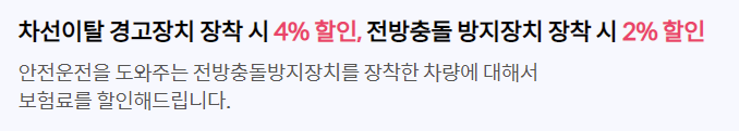 차선 이탈경고장치의 경우 4%, 전방충돌 방지장치의 경우 2%의 할인을 받을 수 있으니 참고바랍니다.