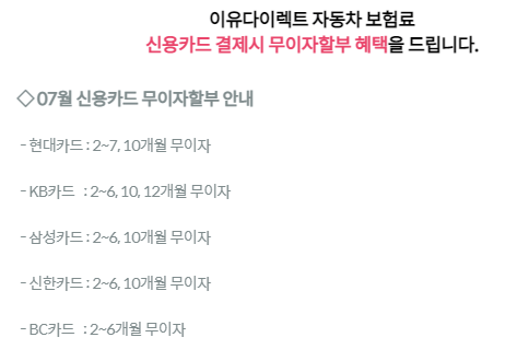 또한 신용카드를 이용하여 보험료를 결제시 위와 같이 무이자할부도 제공하고 있으니 이용에 참고하시길 바랍니다.