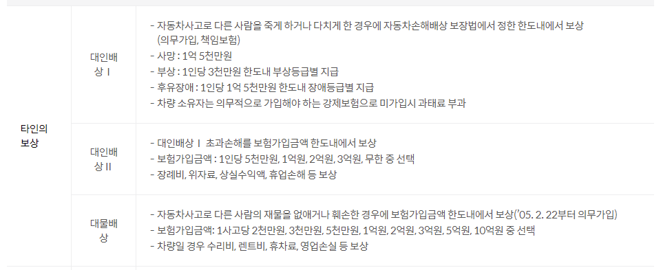 그 첫번째가 자동차를 운행하다 다른사람에게 피해를 입힌 경우 보상하는 것입니다.