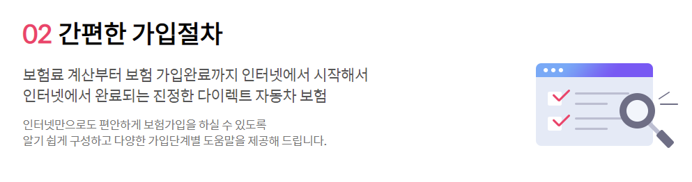 그 대안이 바로 다이렉트 자동차 보험입니다. 다이렉트 자동차 보험은 인터넷으로 직접 신청하기에 설계사 중간마진이 없어 비교적 낮은 보험료가 책정되는데요.