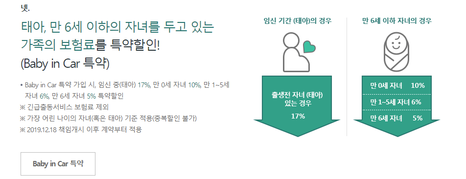 끝으로 만 6세 이하의 어린 자녀가 있는 경우 5%에서 17%까지 추가로 자동차 보험료를 할인받을 수 있으니 참고하시길 바랍니다.