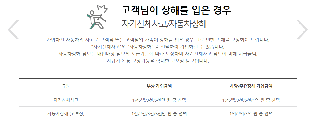 DB손해보험 다이렉트 자동차보험 보장내용
