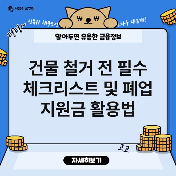 건물 철거 전 필수 체크리스트와 폐업 지원금 활용 방법에 대해 알아보았습니다.