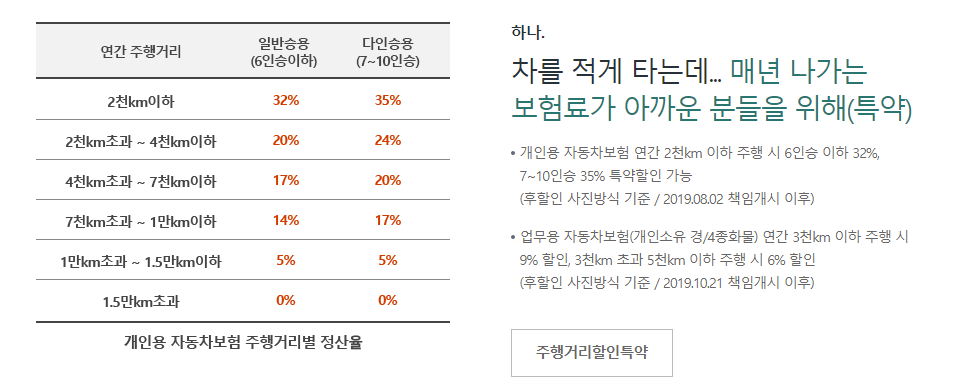 주행거리 할인특약은 차량운행이 적지만 보험을 가입한 분들에게 유리한 특약입니다.
