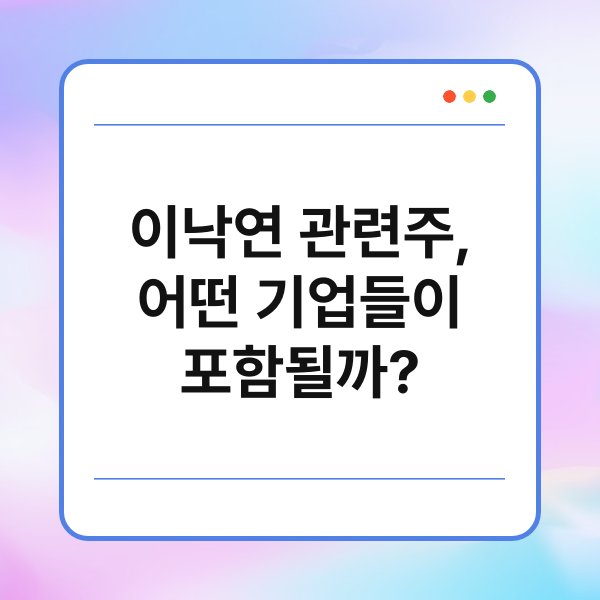 A2: 삼성 계열사, SK그룹, LG그룹, 현대자동차 등이 이낙연 관련주로 주목받고 있습니다. 이들 기업은 이낙연의 정책과 밀접한 관계가 있습니다.