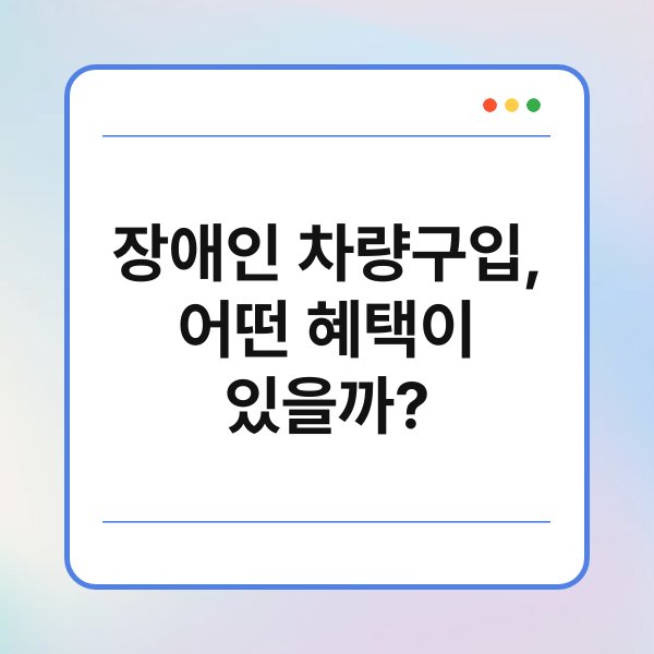 장애인 차량 구입, 막연하게 생각하셨던 분들 많으실 거예요. 하지만 장애인 분들에게는 다양한 혜택이 마련되어 있다는 사실, 알고 계셨나요? 이 글에서는 장애인 차량 구입 시 어떤 혜택이 주어지는지 자세히 살펴보겠습니다. 읽다 보면 "이런 혜택이 있었구나!" 하실 겁니다. 지금부터 함께 알아보도록 해요.