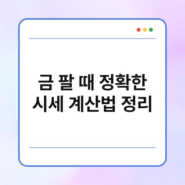금 팔 때, 시세를 정확히 계산하는 것이 중요하다는 사실, 알고 계셨나요? 금은 변동성이 큰 자산이기 때문에 가격을 잘 이해해야 손해를 보지 않을 수 있습니다. 이번 글에서는 금 시세를 계산하는 방법과, 금을 팔 때 고려해야 할 요소들을 살펴보겠습니다. 이렇게 하면 보다 현명한 거래를 할 수 있게 됩니다. 끝까지 읽어보시면, 금 시세 계산법에 대한 유용한 정보를 얻으실 수 있어요!