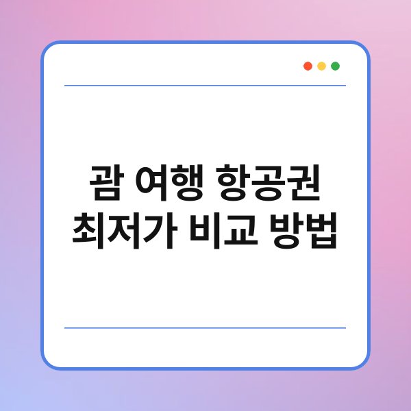 여행을 꿈꾸는 많은 분들이 가장 먼저 고민하는 것 중 하나가 바로 항공권 가격이죠. 특히 괌 여행을 계획하고 있다면 최저가 항공권을 찾는 것이 무엇보다 중요합니다. 하지만 어떻게 하면 저렴한 가격에 항공권을 예약할 수 있을까요? 이 글에서는 괌 여행 항공권 최저가 비교 방법을 소개해 드리겠습니다. 여행 예산을 아끼는 데 도움이 될 수 있는 유용한 팁들을 함께 알아보아요!