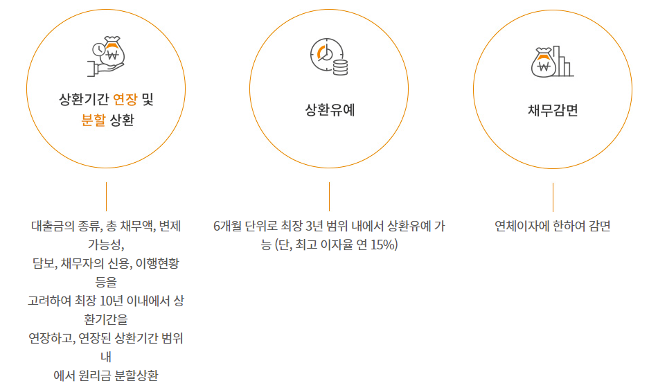 1. 채무감면 : 연체이자에 한하여 전액감면을 받을 수 있습니다.