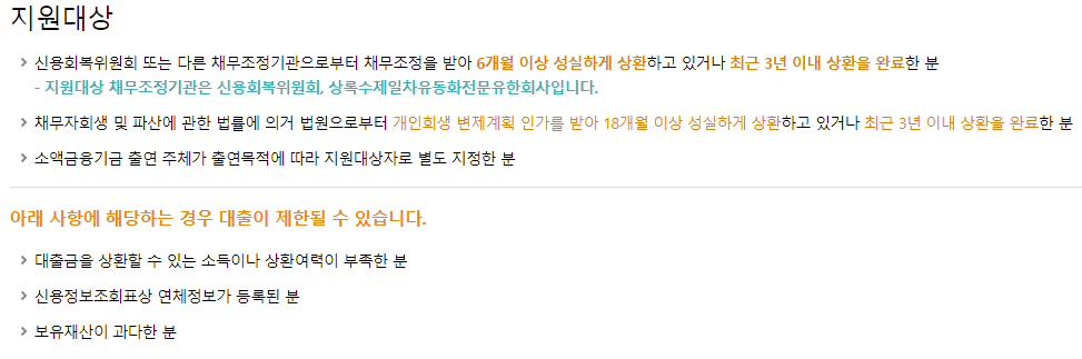 - 채무조정 24개월 이상 상환 : 최대 1500만원 이내