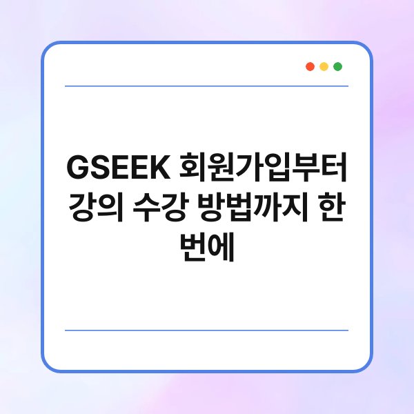 GSEEK, 이 이름 들어보셨나요? 많은 분들이 이 플랫폼을 통해 다양한 강의를 수강하고 있습니다. 하지만 회원가입부터 강의 수강까지의 과정이 약간 복잡하게 느껴질 수 있죠. 그래서 준비했습니다! GSEEK의 회원가입 방법과 강의를 수강하는 과정을 한 번에 정리해드릴게요. 이 글을 통해 GSEEK을 더 쉽게 이용할 수 있는 방법을 알아보세요.
