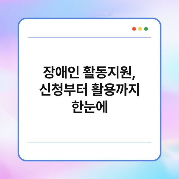 장애인 활동지원, 이젠 꼭 필요한 서비스로 자리 잡고 있습니다. 하지만 신청 과정이나 활용 방법에 대해 잘 모르시는 분들이 많죠? 이 글에서는 장애인 활동지원의 신청부터 활용까지의 모든 과정을 한눈에 알아보도록 하겠습니다. 정보를 통해 보다 나은 지원을 받으시기를 바랍니다. 함께 알아볼까요?