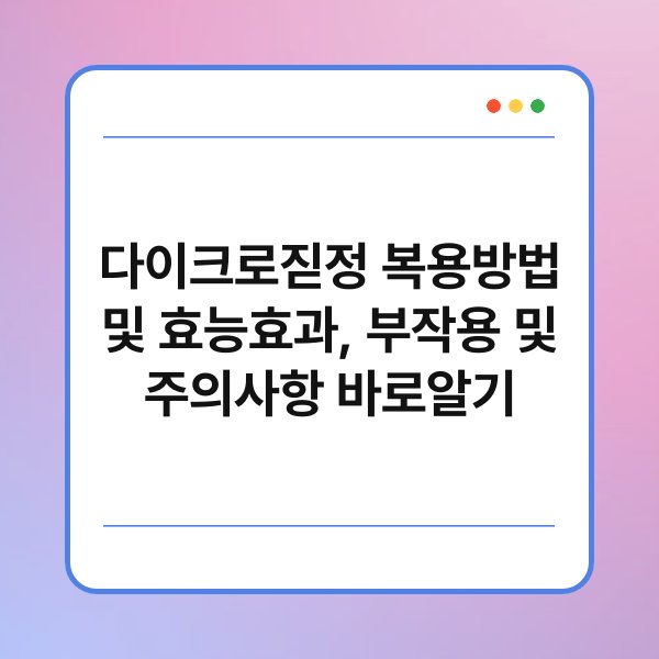 다이크로짇정, 들어보셨나요? 이 약은 다양한 효능으로 많은 사람들에게 알려져 있습니다. 그런데 복용 방법과 주의 사항은 얼마나 알고 계신가요? 오늘은 다이크로짇정의 복용방법, 효능 효과, 그리고 부작용에 대해 자세히 알아보겠습니다. 꼭 필요한 정보를 한눈에 알아보실 수 있도록 정리해드릴게요!