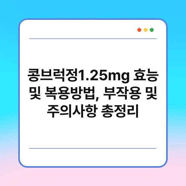 콩브럭정 1.25mg, 이 약에 대해 들어보신 적 있으신가요? 다양한 질병의 치료에 효과적인 이 약물은 특히 만성 폐쇄성 폐질환(COPD) 치료에 널리 사용됩니다. 하지만 어떤 효능이 있는지, 어떻게 복용해야 하는지 궁금하신 분들이 많을 텐데요. 더불어 부작용과 주의사항도 함께 알아보면 좋겠죠? 이번 글을 통해 콩브럭정의 모든 것을 총정리해 보겠습니다.