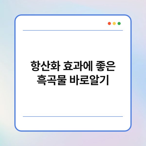 | 흑곡물의 종류 | 검은콩, 흑미, 흑수수 등이 있으며, 각각 항산화 성분이 풍부하다 |