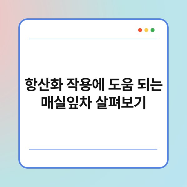 항산화란 우리 몸의 세포를 보호하는 역할을 합니다. 자유 라디칼이라는 해로운 물질로부터 세포를 지키는 것이죠. 이 과정에서 매실잎차가 큰 역할을 할 수 있어요. 매실잎에 포함된 항산화 물질은 노화 방지에 기여합니다.