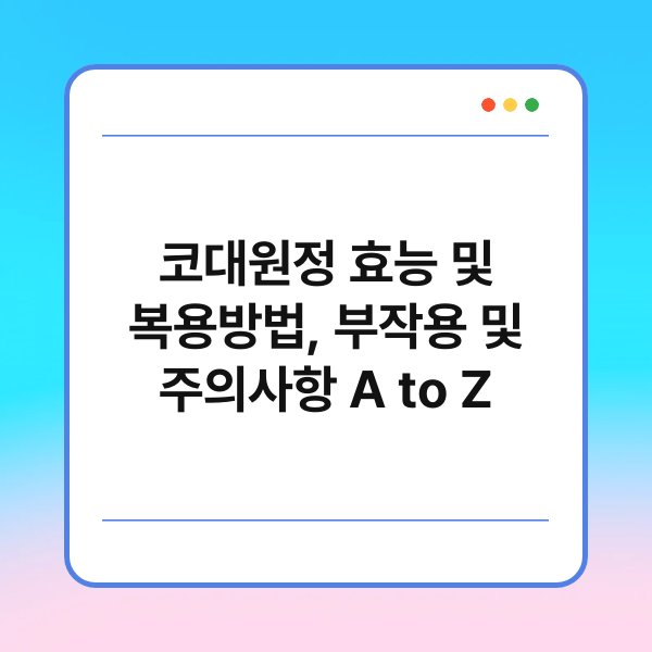 코대원정, 요즘 많이 들어보셨죠? 이 물질은 여러 가지 효능으로 주목받고 있습니다. 그런데 정말 효과가 있을까요? 그리고 복용 방법과 주의할 점은 무엇인지 궁금하시죠? 오늘은 코대원정의 효능과 복용 방법, 부작용 및 주의사항을 A to Z로 살펴보겠습니다.