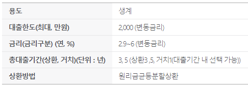 대출금리는 연 2.9%에서 6% 사이로 대출을 신청하시는 분의 신용등급 및 대출조건 등에 따라 개인별 차등 적용됩니다.