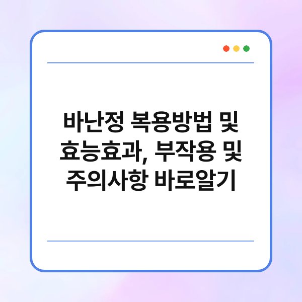 바난정, 들어보셨나요? 이 약물은 여러 효능으로 주목받고 있지만, 복용 방법과 주의사항을 제대로 알지 못하는 분들이 많습니다. 특히, 부작용이란 단어는 누구에게나 가벼운 경각심을 불러일으키죠. 오늘은 바난정의 복용 방법 및 효능효과, 그리고 부작용과 주의사항에 대해 자세히 알아보도록 하겠습니다. 이 글을 통해 바난정에 대한 궁금증을 해소해 보세요!