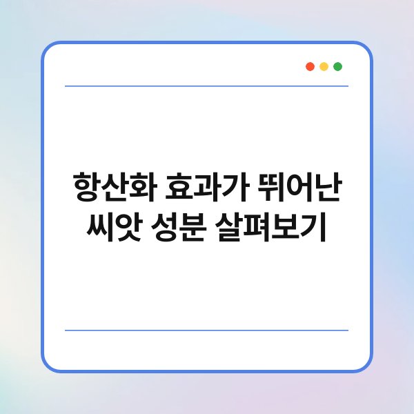 A1. 아마씨, 치아씨드, 호박씨, 해바라기씨, 퀴노아 등이 항산화 효과가 뛰어난 씨앗입니다. 이들은 모두 건강에 다양한 이점을 제공합니다.