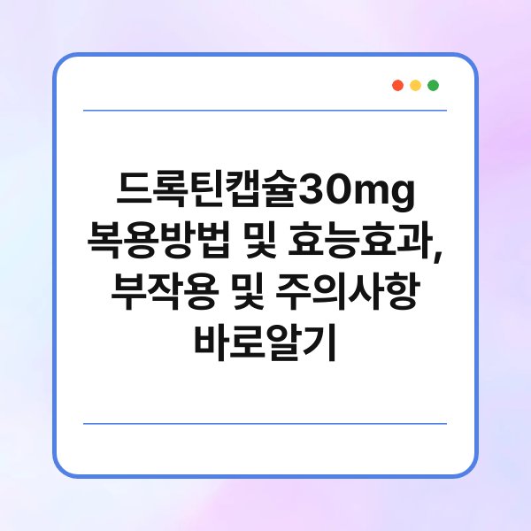 드록틴캡슐 30mg, 들어보셨나요? 이 약물은 다양한 효능으로 많은 분들에게 도움을 주고 있습니다. 하지만 복용 방법이나 부작용에 대한 정보가 부족해 고민하시는 분들도 많을 것 같습니다. 정말 잘 알고 복용해야 안전하게 사용할 수 있죠. 오늘은 드록틴캡슐의 효능, 효과, 복용 방법 그리고 주의사항에 대해 알아보겠습니다. 이 정보를 통해 여러분의 궁금증을 해소해드릴 수 있기를 바랍니다.
