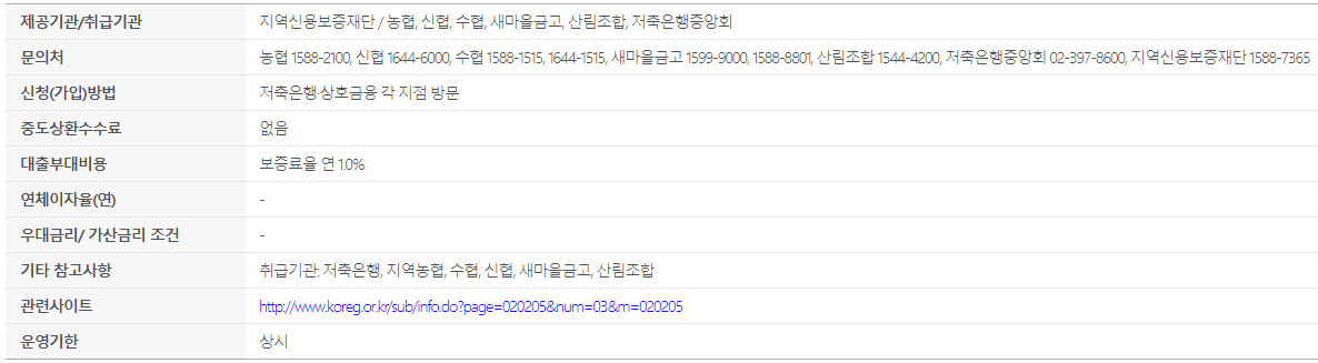 관련 상담을 받고자 하시는 분은 지역신용보증재단 또는 위의 취급금융기관 상담센터로 연락하시길 바랍니다.