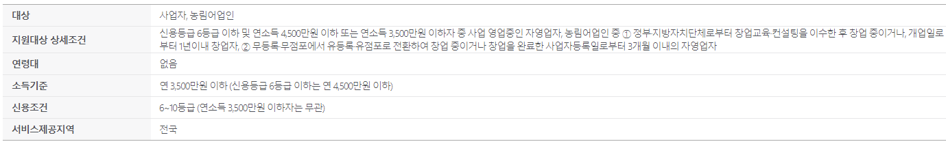 위의 조건을 충족하는 가운데 정부지방자치단체로부터 창업교육 컨설팅을 이수한 후 창업중이거나 개업일로부터 1년 이내 창업자가 이용할 수 있으니 참고하시길 바랍니다.