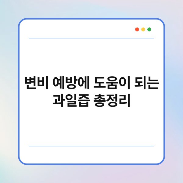 A1: 사과즙, 배즙, 키위즙, 파인애플즙, 자몽즙 등이 변비 예방에 효과적입니다. 각 과일즙은 다양한 성분으로 장 건강을 돕습니다.