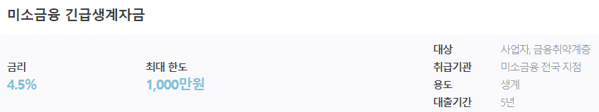 미소금융 긴급생계자금 조건안내