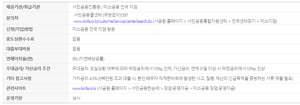 미소금융 긴급생계자금 참고사항