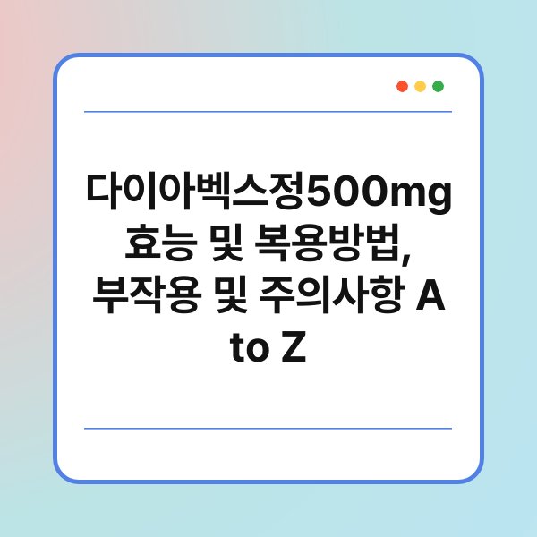 다이아벡스정 500mg, 이 약에 대해 들어보신 적 있으신가요? 당뇨병 관리에 도움을 줄 수 있는 이 약물은 많은 이들에게 필수적인 제품입니다. 하지만 효능과 복용 방법, 부작용에 대해 잘 알지 못하는 분들이 많으실 텐데요. 이번 글에서는 다이아벡스정의 효능과 복용 방법, 그리고 부작용 및 주의사항까지 자세히 알아보도록 하겠습니다. 마지막까지 읽으신다면 이 약에 대한 이해도가 높아질 것입니다.