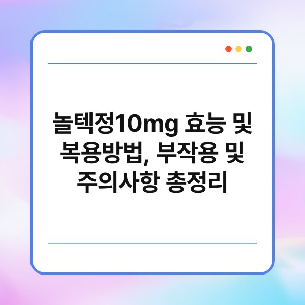 놀텍정 10mg은 많은 분들이 궁금해하는 약물 중 하나입니다. 특히, 효능과 복용 방법에 대해 자세히 알고 싶은 분들이 많으실 텐데요. 이 글에서는 놀텍정의 다양한 효능, 복용 방법, 그리고 부작용 및 주의사항에 대해 친절하게 설명드리겠습니다. 여러분이 궁금해하시는 모든 정보를 한곳에 모았으니 끝까지 읽어보시면 좋겠습니다. 건강에 대한 올바른 정보를 알고 활용하는 것이 중요하니까요.