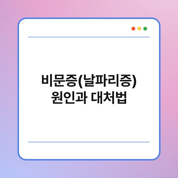 혹시 갑자기 눈앞에 날파리처럼 떠다니는 것 같은 불편함을 경험한 적이 있으신가요? 바로 이런 증상이 나타나는 것을 '비문증' 또는 '날파리증'이라고 부릅니다. 많은 분들이 이런 증상을 겪지만, 그 원인과 대처법을 제대로 알고 계신가요? 이 글에서는 비문증의 원인과 함께 효과적인 대처법을 소개해드리겠습니다. 그럼, 이제 시작해볼까요?