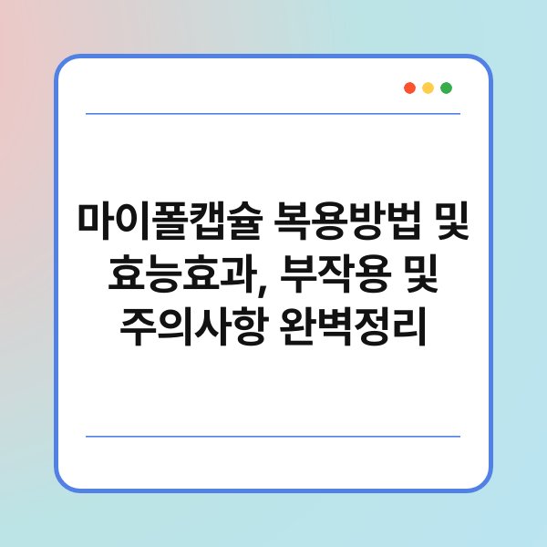 복용 시 주의해야 할 점은 무엇일까요? 먼저, 알레르기가 있는 성분이 포함되어 있는지 꼭 확인하시기 바랍니다. 또한, 특정 약물을 복용 중이라면 상호작용이 있을 수 있으니 전문가와 상담 후 복용하는 것이 좋습니다. 이러한 주의사항을 지키면 안전하게 마이폴캡슐을 사용할 수 있습니다.
