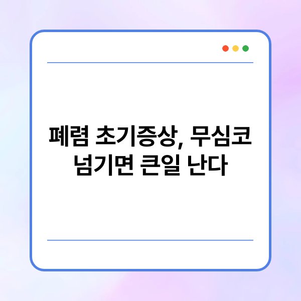 [box] 🔍 핵심 요약 ✅ 폐렴 초기증상은 기침, 발열, 호흡곤란 등으로 나타날 수 있음 ✅ 초기 증상을 무시하면 합병증 위험이 증가함 ✅ 고위험군에 속하는 사람들은 더욱 주의 필요함 ✅ 조기 진단을 통해 치료 효과를 극대화할 수 있음 ✅ 예방을 위해 충분한 수분 섭취와 위생 관리가 중요함 [/box]폐렴의 초기 증상