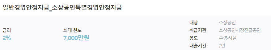 대출한도는 최대 7000만원이며, 소상공인시장진흥공단에서 대출가능한도를 책정하게 됩니다.