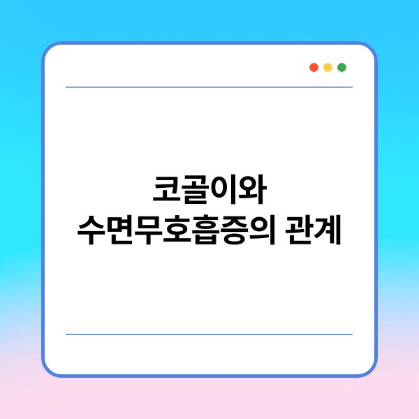 코골이와 수면무호흡증은 밀접한 관계가 있습니다. 코골이가 심한 경우, 수면무호흡증이 발생할 가능성이 높아지죠. 특히, 비만이나 특정 질환이 있는 경우 더욱 주의해야 합니다. 따라서 코골이를 단순한 문제로 넘기지 말고, 증상을 관리하는 것이 중요해요.