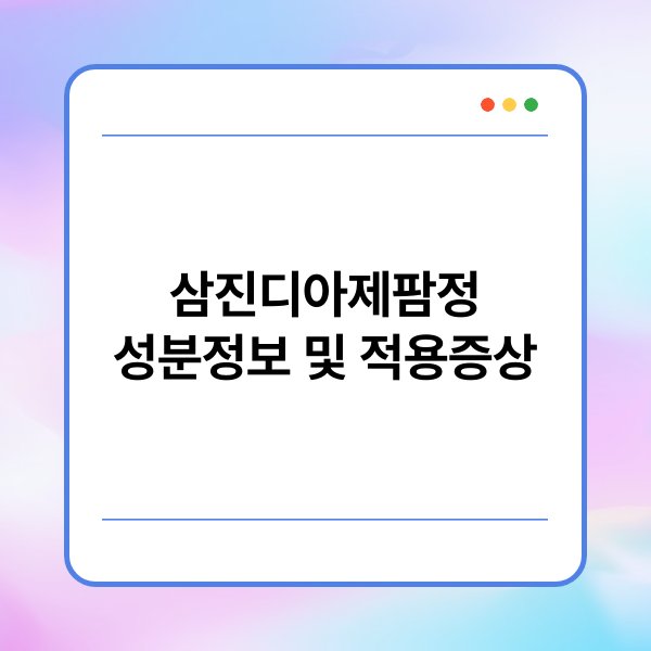 삼진디아제팜정, 이름만 들어도 조금 낯설게 느껴질 수 있죠? 하지만 이 약물이 어떤 성분으로 구성되어 있고, 어떤 증상에 효과적인지 아는 것은 매우 중요합니다. 오늘은 삼진디아제팜정의 성분정보와 적용증상에 대해 자세히 알아보겠습니다. 이 글을 통해 여러분이 약물에 대한 이해도를 높이고, 필요할 때 올바르게 활용할 수 있도록 돕겠습니다.