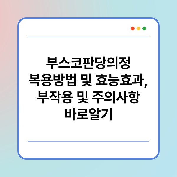 부스코판당의정, 들어보셨나요? 복통이나 위장 불편함으로 고생하는 분들에게 아주 유용한 약물입니다. 하지만 복용 방법과 효능, 부작용에 대해 잘 알고 계신가요? 오늘은 부스코판당의정의 복용 방법, 효능효과, 그리고 주의사항에 대해 꼼꼼히 알아보도록 하겠습니다. 이 글을 통해 부스코판당의정을 올바르게 활용할 수 있는 방법을 제시해드릴게요.