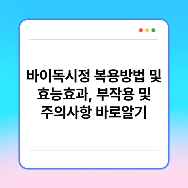 바이독시정, 들어보셨나요? 이 약물은 다양한 효능으로 많은 사람들에게 도움을 줄 수 있습니다. 그러나 복용 방법과 부작용에 대한 정확한 정보가 필요하죠. 오늘은 바이독시정의 효능효과, 복용 방법, 그리고 주의사항을 알아보는 시간을 가져보겠습니다. 이 글을 통해 바이독시정에 대한 이해를 높이고, 안전하게 활용할 수 있는 방법을 찾아보세요!