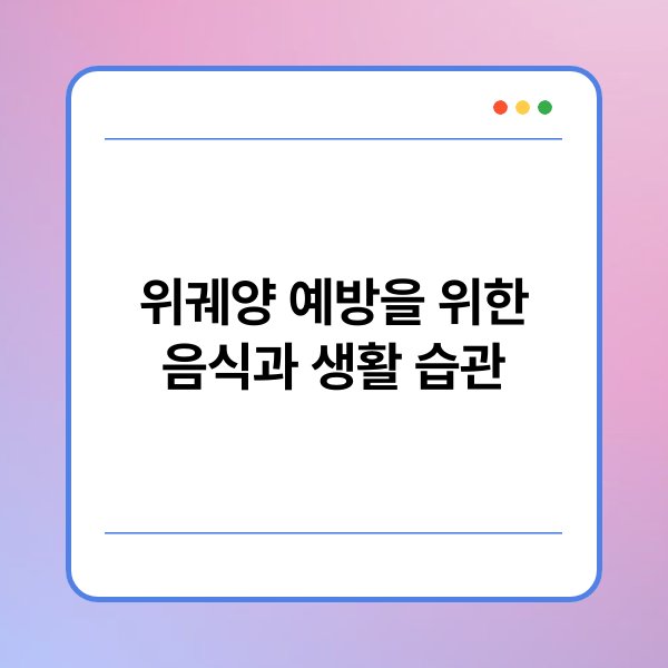스트레스는 위 건강에 직접적인 영향을 미칩니다. 스트레스를 줄이는 방법으로는 운동, 명상, 취미 생활이 있습니다. 자신에게 맞는 스트레스 해소법을 찾아보세요. 이는 위궤양 예방에 큰 도움이 될 것입니다.